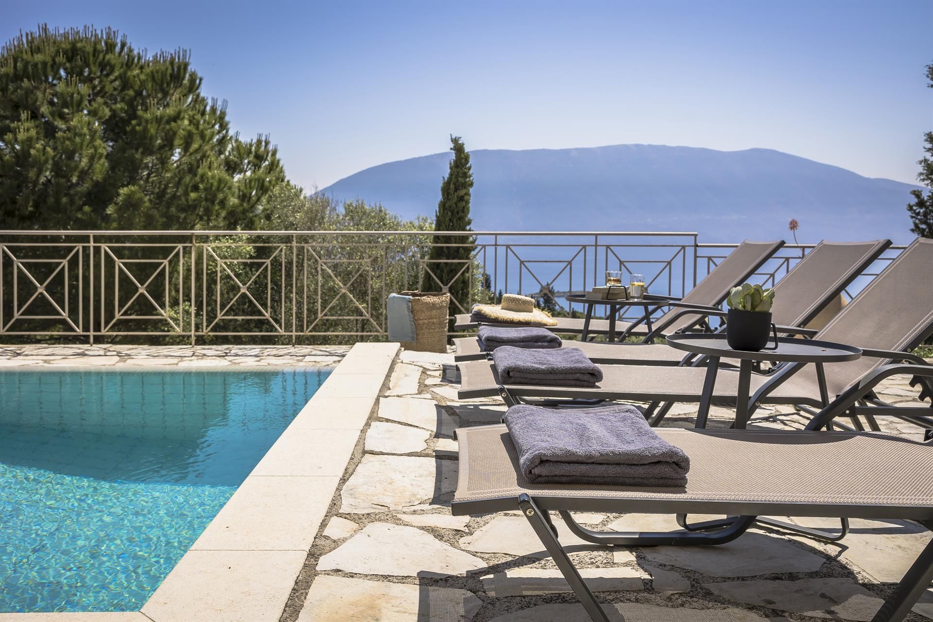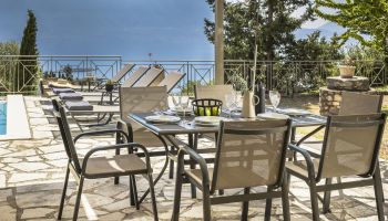 Villa Helios offers picturesque views of the Ionian sea. The 3 storey traditional villa features three separate rooms, two of which are ensuite.