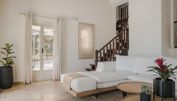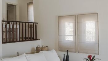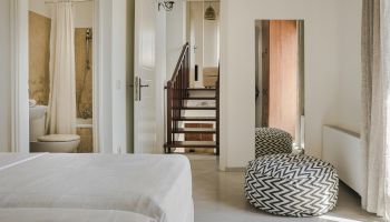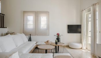 In the elegant home you can find four single beds and one double bed. The villa comes with a fully equipped kitchen and a private swimming pool that provides you with stunning views of Ithaca, home of Odysseus.